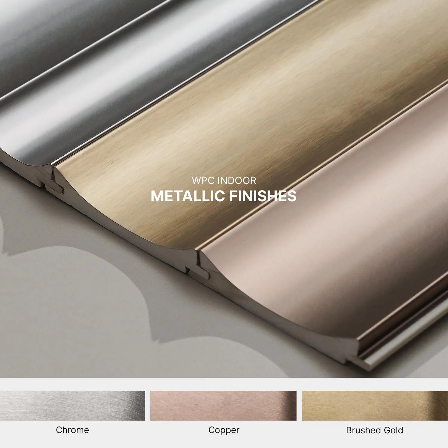 The WPC Indoor Series in Metallic Finishes features a brushed metallic texture that adds depth, sheen, and sophistication to any space. With its sleek surface and subtle shimmer, these finishes create a modern yet timeless statement, perfect for interiors that call for elegance and distinction.